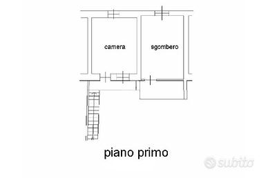 La proprietà si sviluppa su due livelli fuori terra ed è stata parzialmente ristrutturata nel 2018. Il portoncino d'ingresso, collocato sotto un passaggio coperto, conduce al cortile privato dell'abitazione. La zona giorno è composta da un unico ambiente adibito a cucina, mentre il bagno, dotato di doccia, completa il piano. La zona notte, costituita da una spaziosa camera matrimoniale, è accessibile tramite una scala esterna che conduce al balcone. Da qui si accede anche a un'area coperta adibita a sgombero, ideale da sfruttare come terrazzo. Grazie alla sua esposizione a sud, questo spazio gode di un'ottima illuminazione naturale per gran parte della giornata.