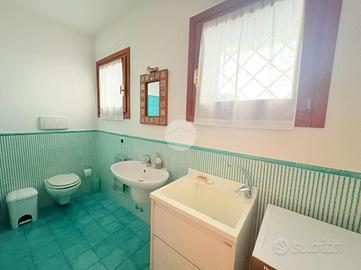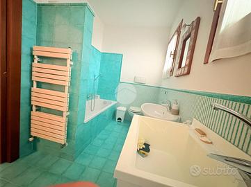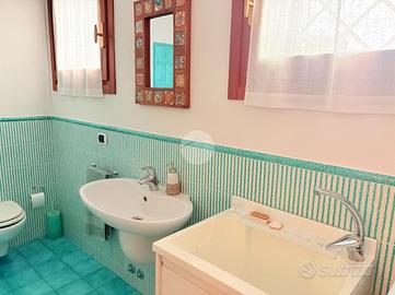 Due bagni: uno al piano terra con vasca adibito a lavanderia, uno al piano superiore con doccia.