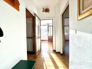 Il primo piano troviamo l'alloggio principale che con ingresso indipendente, accoglie una cucina funzionale, un luminoso soggiorno con vista panoramica sulla vallata, un salotto con camino che può facilmente essere convertito in una seconda camera matrimoniale, una camera da letto matrimoniale e un bagno finestrato, garantendo comfort e privacy.