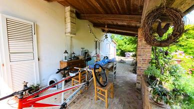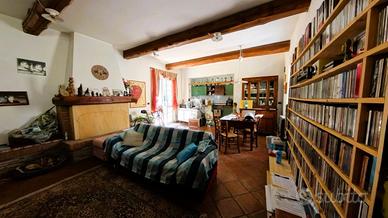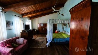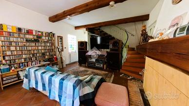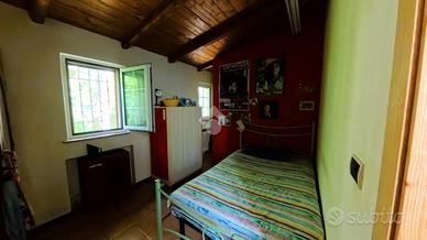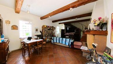 La villetta con portico antistante di 100mq circa, ha l'ingresso sul grande soggiorno con camino che domina il piano terra; soffitto alto , travi a vista e pavimento simil cotto rendono l'ambiente estremamente caldo; completano il piano: un cucinotto finestrato con dispensa, il bagno principale finestrato con box-doccia ed una cameretta con piccolo locale lavanderia. Attraverso la scala interna si raggiunge il primo piano, dove attualmente troviamo un'unica stanza da letto di 40 mq con 4 finestre ampie; tale distribuzione consente di poter suddividere in più stanze il piano; completano la proprietà un secondo bagno ed un ripostiglio.