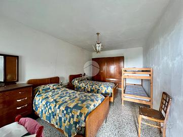 Salendo tramite scala esterna si raggiunge il primo piano, dove il balcone in cemento permette l'accesso a una camera da letto in stato originale e a due ulteriori camere: una parzialmente ristrutturata.
