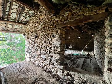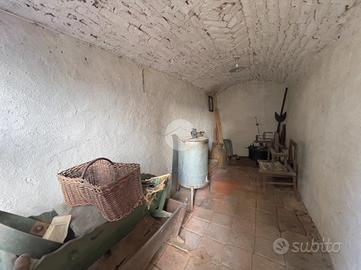 Al piano terra troviamo un'antica cantina con pavimento in terra battuta, utilizzata in passato per la conservazione di mele, formaggi e vino. Accanto è presente un bagno ristrutturato in epoca più recente, completo di antibagno, boiler e vasca, sebbene privo di finestra. Proseguendo, si accede a una cucina abitabile e a una camera, anch'esse riviste in tempi più moderni rispetto alla struttura originaria. A fianco della cucina si trova un locale cantina attualmente utilizzato come deposito, mentre sempre sullo stesso livello è presente un ulteriore vano sgombero, rimasto in stato originale.