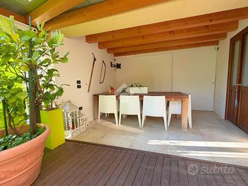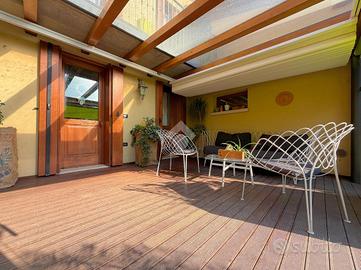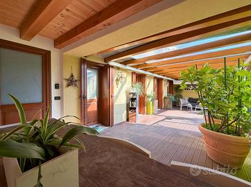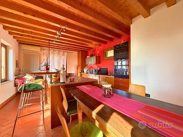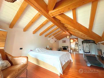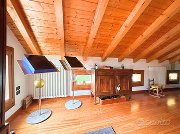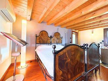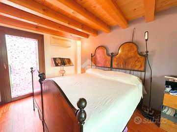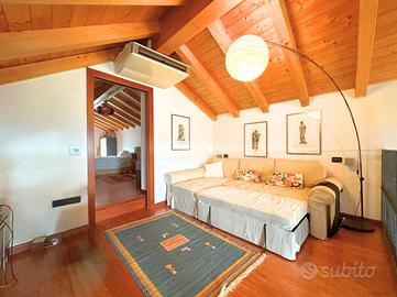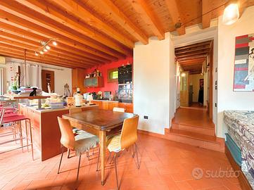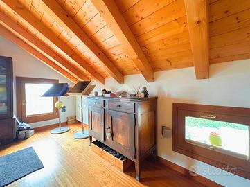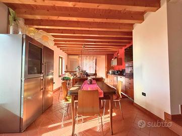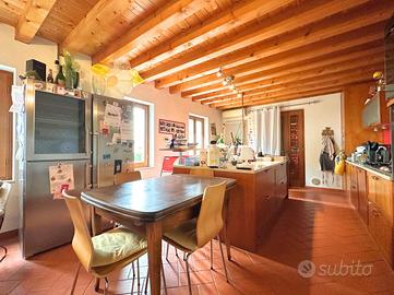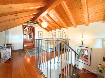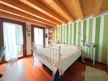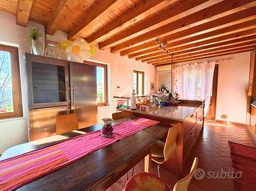 COLCERESA - In una splendida zona collinare che regala scorci panoramici suggestivi, proponiamo una porzione di villa bifamiliare di grande fascino, frutto di una ristrutturazione accurata che unisce comfort moderni e tradizione architettonica locale. L'ingresso avviene attraverso il portico che introduce alla luminosa zona giorno in open space, dove trovano spazio un'ampia cucina e un soggiorno caratterizzato dalla presenza di un camino a legna e con uscita diretta sul giardino. Lungo il disimpegno, al piano terra, incontriamo una camera, ad oggi usata come stanza relax, un bagno con doccia, la lavanderia e un ampio studio con accesso indipendente. Al piano superiore si sviluppa la zona notte, composta da due spaziose camere matrimoniali, entrambe pensate per garantire massima comodità, due bagni e un pratico ripostiglio. Salendo al piano mansardato si sviluppa un'ulteriore grande camera matrimoniale con cabina armadio e un ampio ambiente dedicato a studio, perfetto come spazio privato o lavorativo. A completare la proprietà troviamo un comodo garage con un'area di deposito ben organizzata e una cantina interrata, ideale come spazio di servizio o per appassionati di vini. La villa è stata oggetto di due interventi di ristrutturazione, la prima nel 2003, sul lato Sud, con impianto di riscaldamento a radiatori. A seguire, nel 2012, l'immobile è stato ampliato e in quest'area hanno introdotto un moderno impianto di riscaldamento a pavimento, per un comfort abitativo ancora più elevato. Le finiture rispecchiano lo stile autentico della zona: esterni in pietra e mattoni a vista, interni impreziositi da travature in legno che donano calore e carattere agli ambienti. L'immobile, grazie agli interventi effettuati, raggiunge la classe energetica B, rappresentando una soluzione ideale per chi cerca una residenza elegante e funzionale, immersa nel verde delle colline ma senza rinunciare alle comodità moderne. COME CONTATTARCI Chiamaci al numero contatt