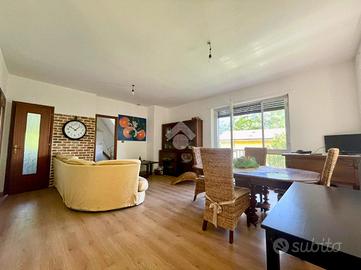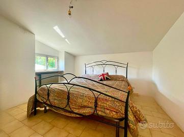 Al piano terreno vi è la seconda unità abitativa che ospita un soggiorno molto luminoso, una cucina abitabile, un bagno dotato di doccia e un ampia camera da letto.