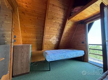 Al piano secondo si sviluppano due camere da letto ed un pratico balcone da cui godere di un ottima vista panoramica. sull'intera vallata.