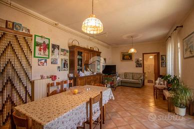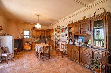 L'immobile di cui la parte abitativa misura circa 160 mq si sviluppa su due livelli e si compone di : Al piano terra, troviamo una taverna abitabile con camino, due cantine ed un bagno. Salendo al piano primo, vi è una cucina abitabile con camino, un soggiorno, due camere da letto matrimoniali ed un bagno.