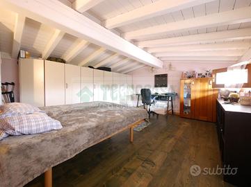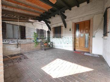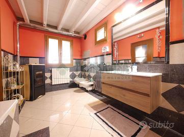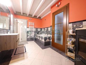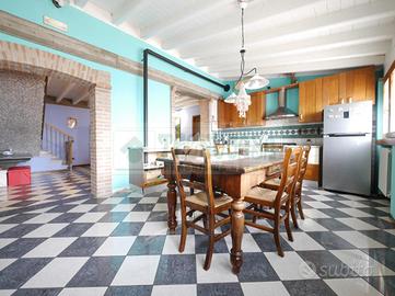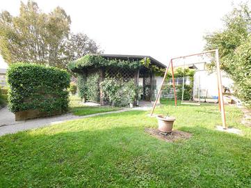 Comezzano-Cizzago- Soluzione indipendente con area esterna di oltre 900 mq, per gli amanti del verde e degli animali. Nella proprietà si accede dal cancello pedonale e dal carraio automatizzato. Il comodo corsello piastrellato conduce all'abitazione. Il giardino è impreziosito da un particolare gazebo in legno di circa 18 mq. Nella parte di terreno rimanente razzolano galline, oche e conigli. Il portico dà accesso alla parte abitata. Dall'ingresso si va nello spazioso soggiorno riscaldato da una stufa a pellet. La cucina adiacente è di generosa metratura ed è illuminata da grandi finestre. La lavanderia è comunicante con un utile ripostiglio. La sala da bagno dispone di doccia, vasca e stufa a pellet ed è confinante con un altro ripostiglio. Gran parte della zona giorno è pavimentata con una ceramica effetto scacchiera e impreziosita dalle travi a vista. Al piano superiore la mansarda (h.max=2,20 m, h.min. =1.80 m) è adibita a zona notte; il vano scala divide la grande camera dei bambini dalla camera matrimoniale con bagno privato. La pavimentazione e il soffitto di tutto il piano sono in legno. Tra i 2 garage nel cortile è presente un grande ripostiglio di circa 25 mq, adibito a dépendance e completa di bagno. Abitazione finita con: 2 stufe a pellet, predisposizione riscaldamento con caldaia a gas (già presenti termosifoni e n°2 termostati), predisposizione riscaldamento con stufa a legna collegata con i termosifoni e per la produzione di acqua calda sanitaria, aria condizionata, tetto isolato e ventilato, muri interni ed esterni in poroton, riscaldamento dependance con caldaia a gas, pozzo per irrigazione giardino, predisposizione addolcitore. Compresi gli arredi di 2 cucine (esclusi tavolo, sedie e credenze), armadi dei ripostigli, armadio della mansarda. AREA EDIFICABILE.