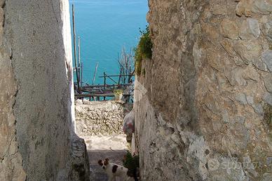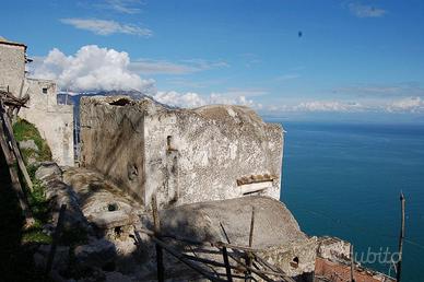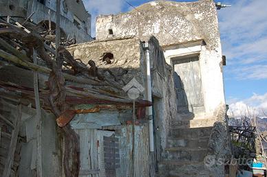 CONCA DEI MARINI - Rustico indipendente situato nella parte alta del borgo, si sviluppa su due livelli ed è circondato da un giardino di 1100 mq che regala una splendida vista panoramica sul mare. Il rustico ha una metratura di circa 65 mq ed è composto da una cantina con un deposito al piano terra, mediante una scala esterna si accede al primo piano, dove troviamo un ampio vano soppalcabile, due piccoli vani e un corridoio retrostante. C'è la possibilità di trasformare l' immobile in due accoglienti case vacanza. Alla proprietà di accede attraverso una strada secondaria, percorrendo solo 80 gradini. Altrimenti dalla strada principale mediante circa 300 gradini.