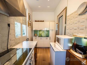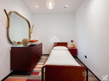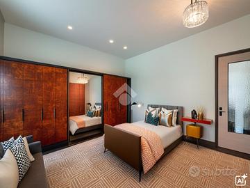 Si sviluppa su un unico livello e accoglie una luminosa zona giorno con piccola cucina separata dotata di predisposizione per la lavatrice. A seguire troviamo la sala da pranzo, collegata alla zona notte, composta da una camera matrimoniale e da una spaziosa camera singola.