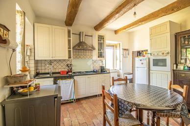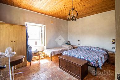 * 100 mq di annessi agricoli che includono due cantine, una stalla, un fienileAl PIANO TERRA troviamo: cucina abitabile con termocamino , disimpegno , ampio soggiorno luminoso con accesso diretto al terrazzo panoramico; una scala interna conduce al PIANO PRIMO dove vi è la zona notte composta da due ampie e luminose camere matrimoniali con pavimenti in cotto ed un bagno con doccia.