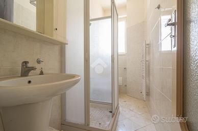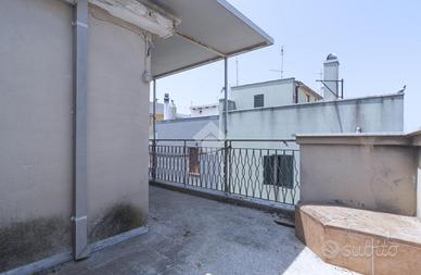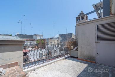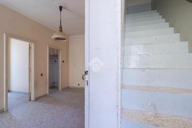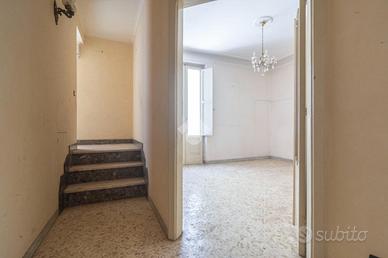 L'ingresso dell'abitazione avviene tramite una comoda scalinata che conduce al primo piano, dove, un funzionale disimpegno, introduce al bagno finestrato con doccia e a un ampio vano luminoso, con affaccio su balcone angolare, ideale come soggiorno o camera matrimoniale, per via della sua metratura e della doppia esposizione.