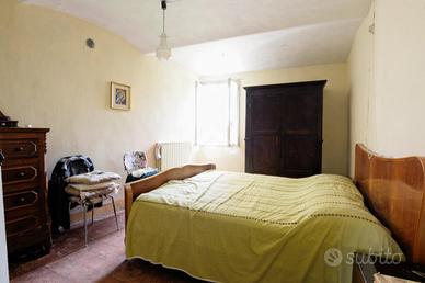 Al piano superiore si accede per mezzo di una scala interna con gradini in pietra rustica che portano all'altra stanza da letto matrimoniale, dotata di doppia illuminazione. Un porta conduce ad un locale sottotetto attualmente al grezzo caratterizzato dalle travi in legno a vista.