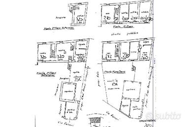 Il piccolo vestibolo dell'ingresso principale dell'immobile mette in collegamento lo spazioso salotto sulla sinistra illuminato da due finestre. Di rimpetto ne abbiamo un altro di dimensioni minori dove successivamente immette nella cucina abitabile dotata di caminetto a legna e di un altra porta di accesso al cortile. Sempre da questo ambiente abbiamo una camera da letto matrimoniale con la pavimentazione in cotto antico e con soffitto a voltini. Accanto troviamo un ampio bagno finestrato con vasca.
