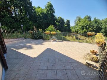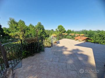 La villa indipendente sui quattro lati, sorge in posizione collinare e panoramica nel paese di Cortandone. Tutti i servizi come la posta, l'alimentare e la farmacia sono comodamente raggiungibili in pochi minuti d'auto presso i paesi di Monale o Montafia. Mediante il cancelletto pedonale si raggiunge l'abitazione. Essa ha ingresso sull'ampio salotto accessoriato di caminetto a legna e accesso diretto alla terrazza di generose dimensioni dalla quale si può ammirare il panorama circostante, la cucina è abitabile e luminosa. Completano il piano il servizio con doccia ed una prima camera da letto matrimoniale. Mediante la scala in marmo si raggiunge il primo piano dove si trova la spaziosa mansarda composta da un secondo salottino, una camera da letto di generose dimensioni e dal servizio accessoriato di doccia. Al piano semi interrato, raggiungibile mediante il cancello carraio automatico, si trovano i due box auto capaci di ospitare fino a cinque autovetture. La proprietà dispone inoltre di un giardino completamente privato e cintato di circa 1000 m con forno a legna e di ulteriori 11.000 metri di terreno. L'intero immobile è stato completamente rifatto nel 2001 ed ha subito un'ulteriore ristrutturazione con l'applicazione di cappotto termico, pannelli solari, pompe di calore e infissi di tipo triplo vetro e zanzariere di recente.
