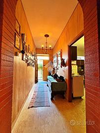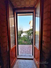 Entrando ci accoglie l'ingresso, alla nostra sinistra la cucina abitabile e bagno di servizio con dispensa, alla nostra sinistra un ampio salone con terrazza collegata al cortile.