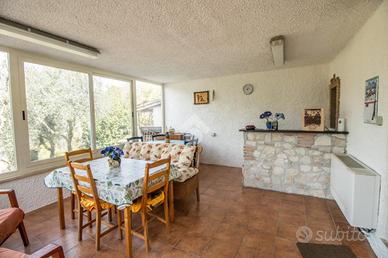 Al PIANO TERRA , una vite caratterizza l'entrata creando un pergolato ombreggiato che ci accompagna all'ingresso dell'abitazione; un ampio e luminoso portico adattato a zona giorno è caratterizzato da grandi vetrate scorrevoli con angolo bar; troviamo poi un soggiorno con camino, un angolo cottura ed bagno con doccia.