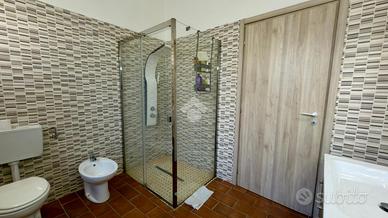 A rendere questa proprietà ancora più interessante sono i locali accessori. Tra essi spicca un ampio magazzino, caratterizzato da profondità e altezza tali da consentire il ricovero di mezzi agricoli pesanti o di un camper, dettaglio particolarmente prezioso per chi ha esigenze professionali o per appassionati del settore agricolo e del tempo libero. La proprietà dispone inoltre di due box auto chiusi e di una tettoia aperta, ideale