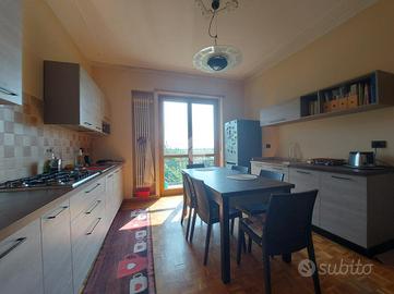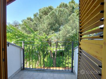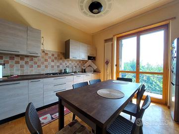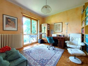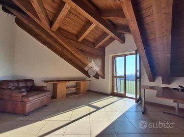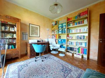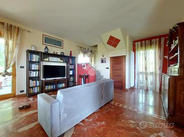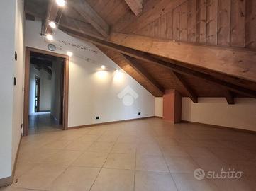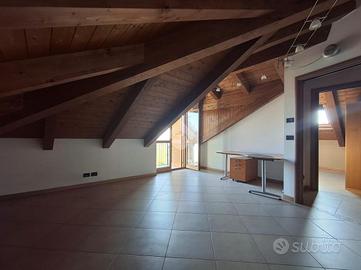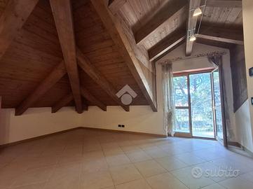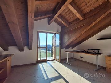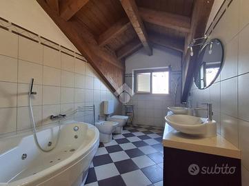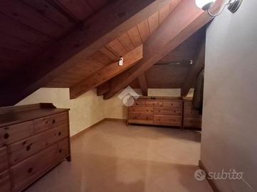 Una scala in muratura collega il soggiorno alla mansarda, composta da altre tre camere con abbaini e balconcini, un ripostiglio e un bagno con vasca idromassaggio. Tutti gli ambienti si distinguono per l'accogliente atmosfera creata dal tetto in legno con travi a vista. Al piano interrato, accessibile da una scala a chiocciola interna, sono presenti un box auto e una cantina.