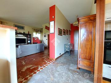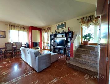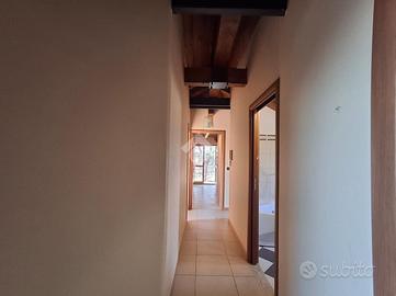 Il piano terra, accessibile tramite un ampio porticato aperto, è composto da una cucina abitabile, un ampio soggiorno caratterizzato da una parete con un elegante arco in legno, una camera luminosa, un disimpegno, un ripostiglio e un bagno con vasca multifunzione. Il ripostiglio, dotato di finestre, potrebbe essere trasformato in una seconda camera. Il primo piano, accessibile tramite una scala esterna in muratura, dispone di un ingresso, una cucina abitabile con balcone, un ampio soggiorno con camino e pavimento in marmo rosso, che si affaccia su un grande terrazzo coperto, un bagno con vasca e doccia, una lavanderia e una camera con balcone.