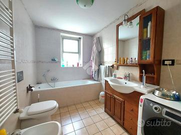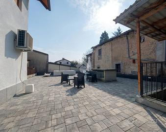 Nel cuore del paese, in un tranquillo contesto residenziale, proponiamo una casa indipendente con cortile privato di circa 150 mq, ideale per chi desidera comfort, privacy e tutte le comodità a portata di mano. L'abitazione, completamente ristrutturata nel 2014, si presenta in perfette condizioni: il tetto è stato rifatto nel 2021 e ospita un impianto fotovoltaico di ultima generazione che contribuisce al risparmio energetico. La facciata, recentemente ritinteggiata, è ulteriormente valorizzata da eleganti rifiniture in pietra di Luserna che donano un fascino autentico e curato all'intero edificio. Gli interni si distinguono per la loro funzionalità e calore. Al piano terra si sviluppa la zona giorno con cucina abitabile, soggiorno arricchito da una stufa a idropellet (collegata anche ai termosifoni della casa) e bagno finestrato. Una comoda scala interna conduce al piano superiore, dove troviamo la zona notte composta da una spaziosa camera matrimoniale con cabina armadio e da una seconda camera singola, entrambe affacciate sul balcone. Un pratico ripostiglio con botola consente invece l'accesso al sottotetto, utile come spazio di deposito. La casa è dotata di impianto di climatizzazione con pompa di calore su entrambi i piani, gestibile anche da remoto, mentre il riscaldamento è garantito da una moderna caldaia a condensazione di recente installazione. All'interno del cortile privato, accessibile anche con l'auto, sorge un rustico su due livelli attualmente adibito a magazzino ma con ottime potenzialità di recupero per ampliare gli spazi abitativi o creare una dépendance. Soluzione ideale per chi cerca un'abitazione pronta da vivere, efficiente dal punto di vista energetico e inserita in un contesto riservato ma centrale.