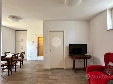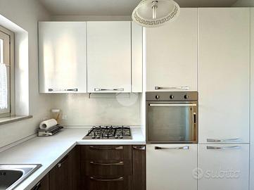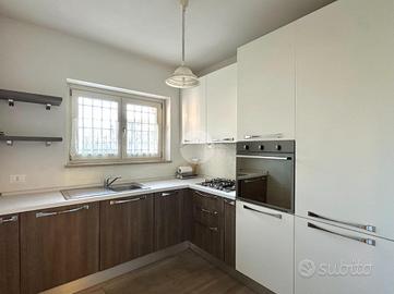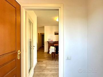 Il trilocale ha l'ingresso dal portoncino blindato e, tramite una bussola, si accede al soggiorno, con porta finestra affacciata sul giardino.