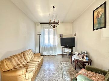 Il trilocale ha l'ingresso dal portoncino blindato e, tramite una bussola, si accede al soggiorno, con porta finestra affacciata sul giardino.