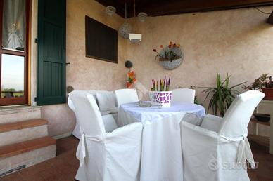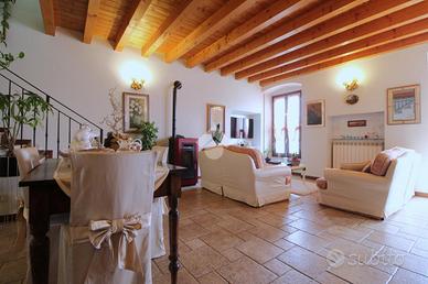 COSA SAPERE SULLA CASA: CASA INDIPENDENTE - SU PIU' LIVELLI - SOGGIORNO - CUCINA SEPARATA - DUE CAMERE DA LETTO MATRIMONIALI - CAMERETTA - CABINA ARMADIO - DUE BAGNI - PORTICO - FIENILE - TERRENO - POSTO AUTO - LAVANDERIA DESCRIZIONE E PARTICOLARITA': Casa indipendente di ampia metratura, sviluppata su più livelli, ideale per chi è alla ricerca di spazi comodi, ben distribuiti e grande versatilità abitativa. Tramite portoncino blindato al piano terra si accede alla scala che conduce al soggiorno luminoso posto al piano primo, affiancato dalla cucina separata e funzionale, dalla quale si accede direttamente al terrazzo: uno sfogo esterno riservato, perfetto per pranzi all'aperto e momenti di relax. Dalla cucina si accede inoltre alla lavanderia e al bagno di servizio, rendendo questi ambienti comodi e ben integrati nella zona giorno. Al secondo piano si trova la zona notte composta da due camere da letto matrimoniali, una cameretta, una pratica cabina armadio e un bagno finestrato con vasca. All'esterno, il portico rappresenta un ambiente coperto vivibile in ogni stagione. La proprietà è completata dal fienile e dal terreno di pertinenza, che garantiscono privacy e molteplici possibilità di utilizzo. È inoltre possibile ricavare comodamente uno spazio da adibire a box auto, oltre al posto auto già presente. Al piano terra si trova un ulteriore appartamento trilocale da ristrutturare, un ambiente indipendente che offre la possibilità di essere personalizzato secondo le proprie esigenze, ideale come spazio aggiuntivo, per familiari o per creare una soluzione abitativa separata.