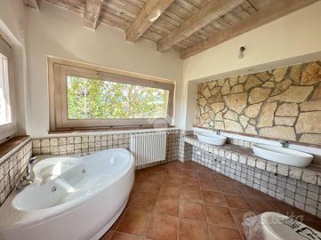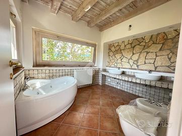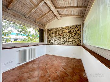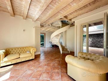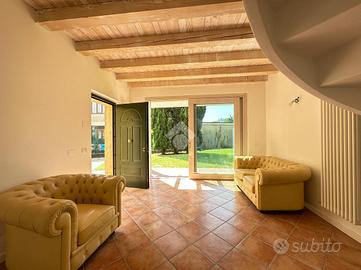Ubicata in quartiere molto strategico, comodo ai servizi, ai supermercati, ai negozi ed alla stazione, villetta indipendente disposta su più livelli con grande porzione di giardino privato. Al piano terreno si trova la zona living, la cucina, il patio e il primo dei tre bagni finestrati. Al centro del living trova spazio la scenografica scala elicoidale, in marmo, che conduce ai piani superiori. Al primo livello si trovano la camera matrimoniale, un altro locale adibito a camera doppia, il bagno finestrato con doccia ed il balcone. Il piano superiore ospita la terza camera ed il terzo bagno con vasca. Il tetto dell' abitazione è piano, raggiungibile tramite scala esterna ed è utilizzato come grande solarium.