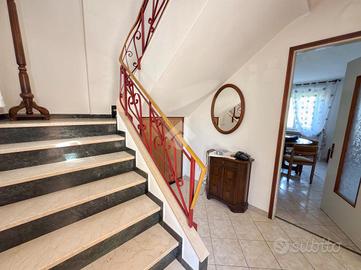 Al primo piano troviamo un comodo corridoio che ci da accesso diretto a tre spaziose camere luminose, tutte e tre matrimoniali, ai due bagni, uno di servizio ed uno più ampio dotato anche di doccia. Completa il piano un comodo terrazzo abitabile.