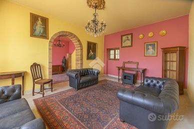Al piano terra, un accogliente soggiorno che si apre su un salone spazioso, ideale per momenti di relax e convivialità. La sala da pranzo con camino, adiacente al cucinotto, è perfetta per cene in famiglia. Ai piani superiori, quattro camere matrimoniali garantiscono comfort e privacy. Completano la proprietà un bagno e una lavanderia/centrale termica con uscita sul retro dell'abitazione.