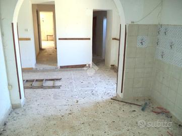 L'immobile è composto da un comodo ingresso, cucina, bagno, locale di sgombero, due disimpegni, due camere e studio. Di pertinenza sono anche due garage di 14 Mq e 19 Mq ca. , un magazzino composto da tre vani e cortili antistante e nella parte posteriore dell'abitazione, oltre terreno di 440 mq circa.