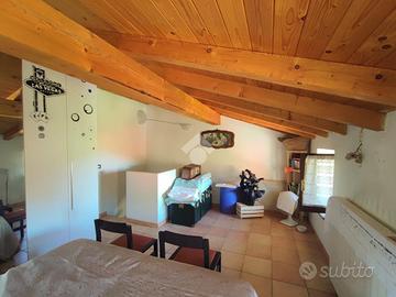 La proprietà è semindipendente ed è stata completamente ristrutturata da una quindicina di anni. L'abitazione è disposta su più livelli: l'ingresso è tramite il cortiletto con piccolo angolo giardino. La cantina completa della caldaia e il bagno finestrato con la doccia sono al piano terra. La cucina è al primo piano, è abitabile con doppia finestra e completa di camino. Al secondo e ultimo piano vi è la camera da letto matrimoniale mansardata.