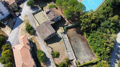 Il fabbricato è circondato da un'ampia corte privata che comprende campo da tennis scoperto dotato di impianto di illuminazione notturna.