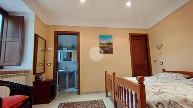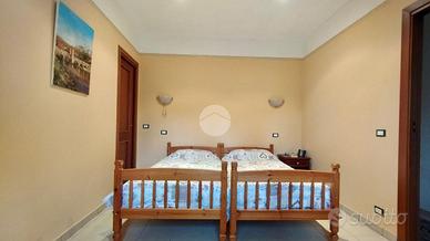 - al primo piano, due ingressi laterali alla struttura: a sinistra si accede alla taverna, a destra alla camera da letto con bagno finestrato e a un piccolo sgabuzzino nel sottoscala;