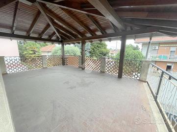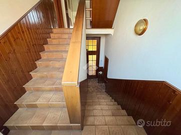 Percorrendo la scala interna si accede al primo piano dove troviamo la cucina abitabile con vista sull'ampio soggiorno con uscita diretta ad un terrazzo coperto, una seconda camera matrimoniale e il bagno padronale dotato sia di vasca che di doccia.