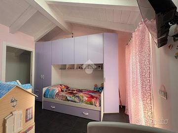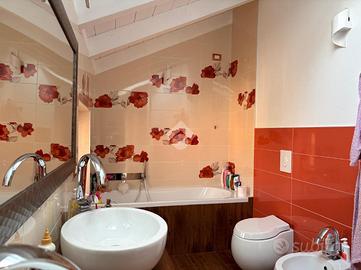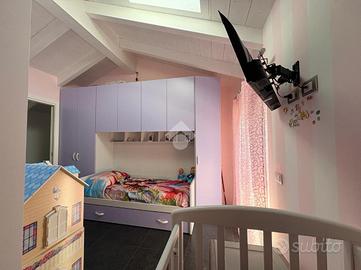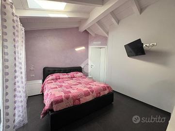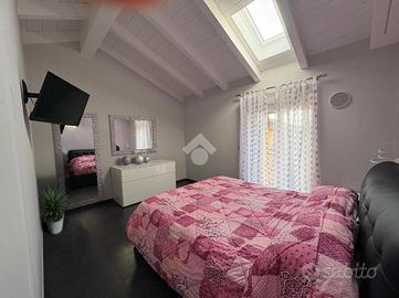A piano mansardato, travi bianche a vista che donano luminosità agli ambienti. Qui si sviluppa la zona notte, composta da una camera matrimoniale con ampia cabina armadio (con possibilità di adibirla a camera singola), una seconda camera doppia oltre bagno con finiture di pregio, dotato di vasca.
