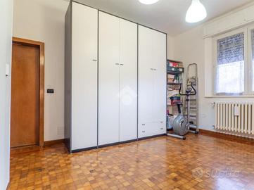 Salendo al primo piano si sviluppa la zona notte, composta da un corridoio che disimpegna un bagno completo e quattro ampi vani. Gli ambienti sono attualmente suddivisi in due camere matrimoniali, un salotto e uno studio, ma possono essere facilmente riconfigurati in base alle necessità della famiglia.