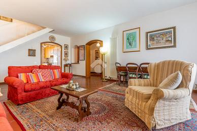 SAN MARTINO: VIA DELL'UCCELLINO: in strada senza uscita, proponiamo in vendita villa di ampia metratura, libera su due lati e disposta su due livelli situata in un contesto tranquillo e riservato, ideale per chi cerca privacy e silenzio. L'abitazione si apre su un comodo disimpegno d'ingresso che conduce all'ampio e luminoso salone con camino e balcone. La cucina abitabile, anch'essa servita da balcone, offre spazi funzionali per la vita quotidiana. Sempre al piano troviamo un' ampia camera matrimoniale, una camera singola, un bagno e un ampio bagno con vasca. Nel disimpegno è presente una pratica armadiatura a muro su misura. Tramite una comoda scala si accede al piano superiore mansardato (sottotetto), dove troviamo una zona studio/relax con accesso a un ampio terrazzo. Un ulteriore ambiente, suddiviso tramite armadiaturara ha permesso la realizzazione di due vani aggiuntivi, servite da un secondo terrazzo. Al piano terra completano la proprietà un doppio garage, un vano tecnico con caldaia e un importante valore aggiunto: ascensore esterno privato che collega direttamente il garage all'ingresso principale dell'abitazione. La proprietà è completata da giardino recintato. L'immobile si presenta in buono stato manutentivo, con porta in massello, infissi e scuri in legno, sistema di allarme. Soluzione ideale per famiglie alla ricerca di comfort e tranquillità in zona residenziale. DA VEDERE!