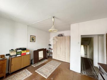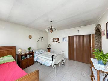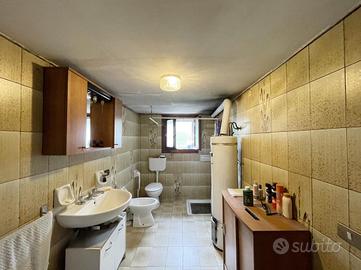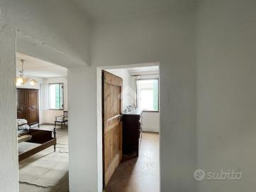 L'ingresso dell'abitazione, al piano terra, apre sulla zona giorno separata dalla cucina abitabile, troviamo poi un ampio ripostiglio e un bagno finestrato con box doccia.