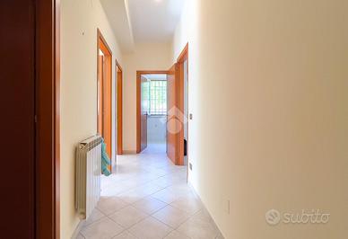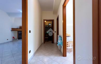 L'immobile presenta un ingresso che conduce nella zona giorno composta da soggiorno, cucina abitabile e bagno. Un corridoio divide la zona giorno dalla zona notte, dove troviamo tre camere da letto, di cui una singola, una doppia e una matrimoniale, un secondo bagno e un comodo ripostiglio.