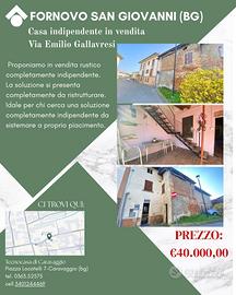 Posizionato in una tranquilla zona residenziale di Fornovo San Giovanni, proponiamo in vendita rustico completamente indipendente da sistemare.