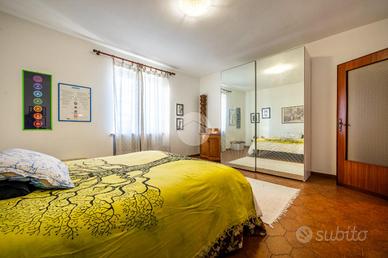 La zona abitativa si sviluppa interamente al piano primo. L'ingresso avviene su un ampio corridoio centrale che separa le due aree principali della casa: la zona notte, formata da tre camere da letto matrimoniali e la zona giorno, composta dall' ampio soggiorno che, tramite balcone esterno pertinenziale, è collegata alla sala da pranzo con cucina. Il bagno è finestrato dotato di box doccia.