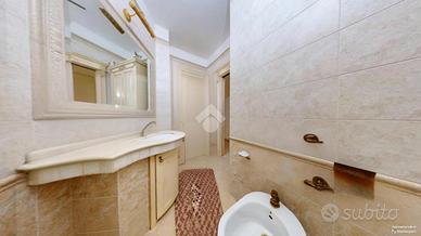 Il bagno segue la linea e lo stile della casa, firmato Versace, è dotato di vasca idromassaggio Tresse.