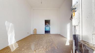 L'ingresso si apre su un'ampia sala che, con un'accurata ristrutturazione, potrebbe essere il tuo open space, e continua con un bagnetto e un pozzo luce.