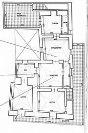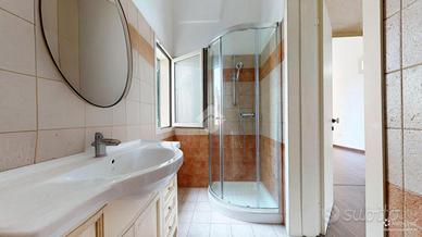 Segue una sala pranzo, una cucina con camino che dà su un comodo e luminoso terrazzo a livello, utile spazio aperto da vivere.