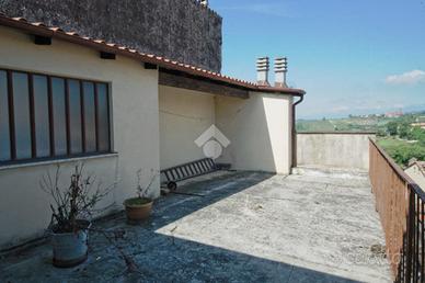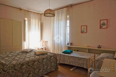 Il Comune di Frassinello Monferrato rimane nel cuore del Monferrato, a circa 20 minuti da Casale Monferrato e dai principali raccordi autostradali. Il paese gode di una splendida vista sulle colline coltivate e sono presenti numerose attività di ristorazione. All'interno del Comune troviamo una scuola primaria, l'ufficio postale, la biblioteca ed è servito dalle linee degli autobus sia per Casale Monferrato, sia per Moncalvo. L'immobile è posto in prossimità della piazza principale ed è indipendente su due lati. L'accesso avviene direttamente sull'ampio salone illuminato da due finestre, rendendolo molto luminoso. Una doppia porta a vetri conduce nel tinello che raccorda le scale che vanno al garage sottostante, a quello che conducono alla zona notte e all'ingresso della cucina. Questa è spaziosa ed ha una porta finestra che conduce ad un piccolo balcone. Al piano superiore un disimpegno collega le due ampie camere da letto matrimoniali, di cui una con doppia esposizione. Sempre allo stesso piano abbiamo il bagno finestrato con doccia. Dal disimpegno si accede all'ampio terrazzo di circa 25 mq che gode di una splendida vista sulle colline verso il paese di Olivola e sui tetti di Frassinello. Al piano inferiore abbiamo un ampio vano seminterrato dotato di finestre con funzione anche di garage, dotato di basculante, in cui si trovano la centrale termica e la lavanderia. Di proprietà sono anche due piccole cantine al di fuori dell'immobile. Il riscaldamento dell'abitazione è dato dai termosifoni in metallo e la caldaia è a gasolio, ma è possibile allacciarsi alla rete del metano. Gli infissi sono in legno con il vetro singolo. Completano la proprietà due terreni agricoli posti nella periferia del paese, in località San Rocco, di circa 6.830 mq.