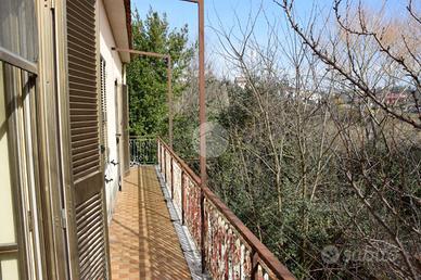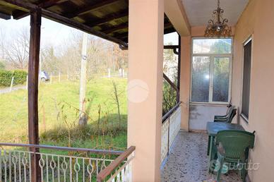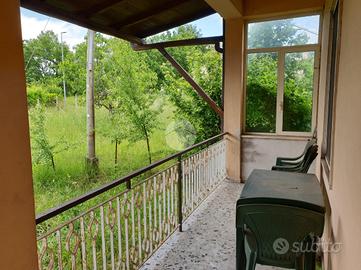 La casa completamente indipendente si sviluppa su 2 livelli. L'ingresso principale è protetto da un porticato, entrando dal portone ci troviamo un disimpegno che ci permette di accedere nei vari ambienti della casa, sul lato sinistro troviamo la cucina abitabile e sul lato opposto c'è un ampio soggiorno.