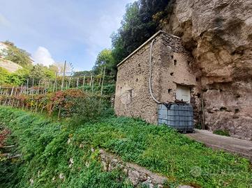 FURORE - Immersa in un contesto naturale di straordinaria suggestione, raggiungibile tramite una scala di circa 40 gradini, questa proprietà ospita due piccoli edifici indipendenti, costruiti a ridosso della roccia e separati tra loro. Sono circondati da un incantevole vigneto di circa 1.700 mq, curato con grande dedizione. Il vigneto è in piena attività, con pergolati e macere in pietra perfettamente conservati, che testimoniano l'attenzione e la cura dedicate a questo angolo di natura. I due fabbricati, ciascuno di circa 15 mq e con un'altezza di 5 metri ciascuno, si integrano armoniosamente nel paesaggio circostante, offrendo un'atmosfera autentica e riservata. La proprietà è dotata di una monorotaia che facilita il trasporto, e comprende inoltre un boschetto di circa 900 mq, che incornicia e completa questo angolo di quiete e bellezza mediterranea.