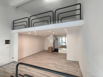 Il negozio, di circa 70 mq complessivi, è composto da un ampio locale principale con livelli sfalsati, che conferiscono dinamismo e funzionalità agli spazi. È presente un wc di servizio.