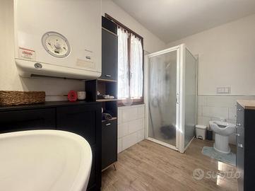 L'abitazione, sviluppata su tre livelli, al piano terra presenta zona giorno composta da un luminoso salotto con caminetto a legna, sala da pranzo e cucina open space di generose dimensioni. A terminare il piano bagno finestrato con box doccia e lavanderia.